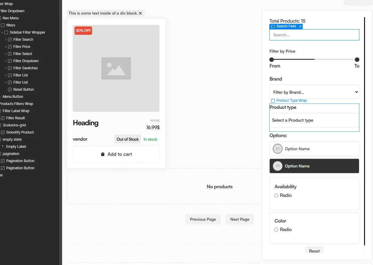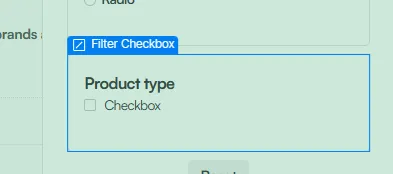This element allows you to show up the selected Filter using buttons (that will act as radio buttons). This is particularly adviced if you are filtering up by a Metafield