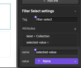 selected-valueLabel of the preselected valueFor example, if you want to preselect a collection inside a Collection CMS page, you can select the filter element that has the label Collection and set as selected-value the Collection Name