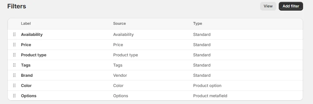 You can use several different types of search filters. You must create them in Shopify Search & Discovery app first