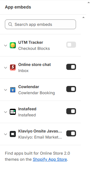 - You will automatically see all the listed Shopify Third Party Apps enabled in your store.